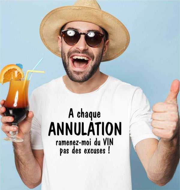 T-Shirt homme « À chaque Annulation ramenez moi du vin pas des excuses «